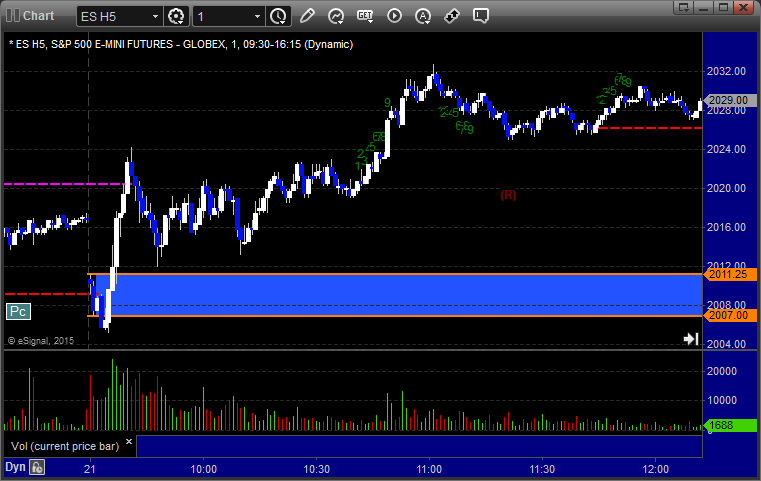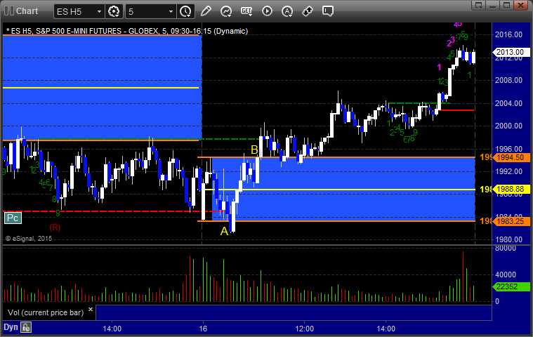ES Opening Range Play triggered long at A and didn't work, then triggered short at B and worked great: