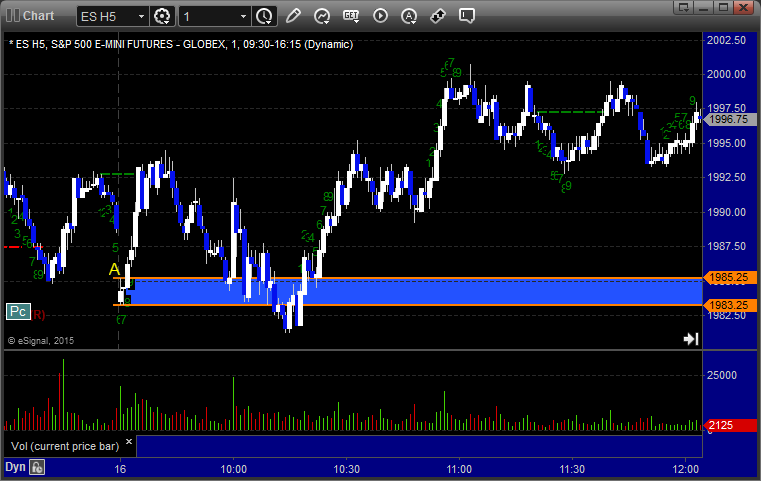 Triggered short at A at 1983.00, hit first target for 6 ticks, and closed second half over entry: