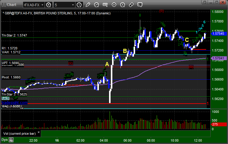 Triggered short at A and stopped. Was already back under the Pivot trigger when I woke up in the morning, so no second trade: