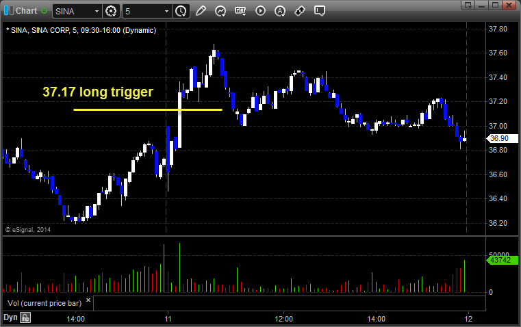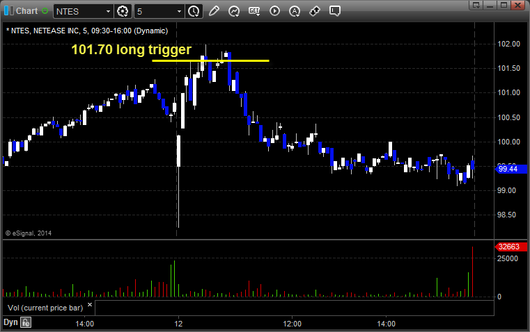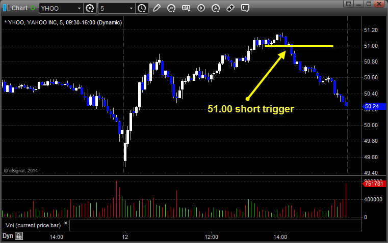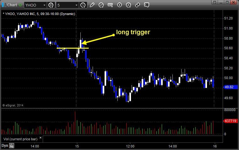 From the Messenger/Tradesight_st Twitter Feed, Rich's YHOO triggered long (with market support) and worked enough for a partial: