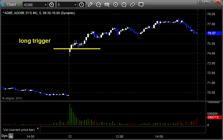 From the Messenger/Tradesight_st Twitter Feed, Rich's ADBE triggered long (with market support) and worked: