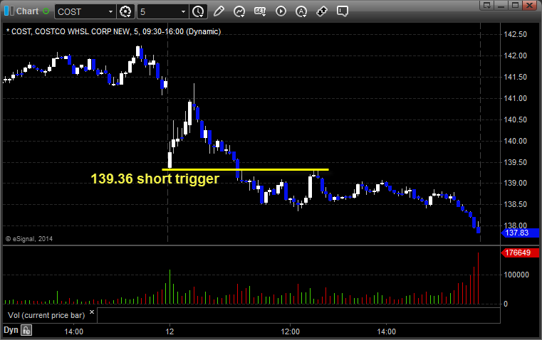 With each stock's recap, we will include a (with market support) or (without market support) tag, designating whether the trade triggered with or without market directional support at the time. Anything in the first five minutes will be considered WITHOUT market support because market direction cannot be determined that early. ETF calls do not require market support, and are thus either winners or losers.