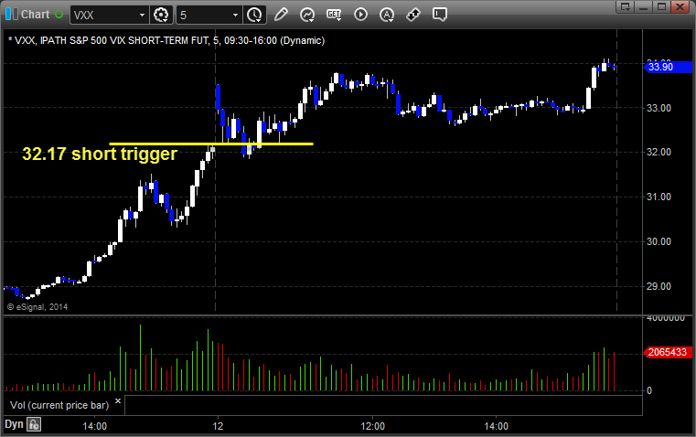 Rich's VXX triggered short (ETF, so no market support needed) and worked enough for a partial: