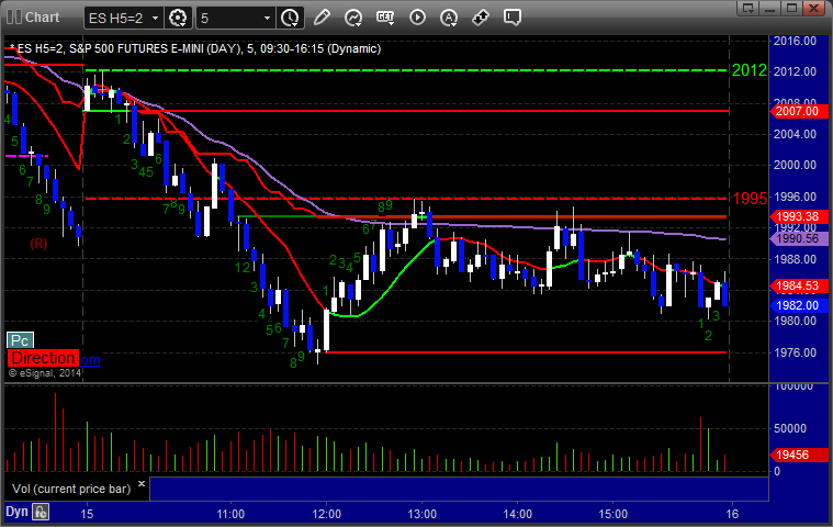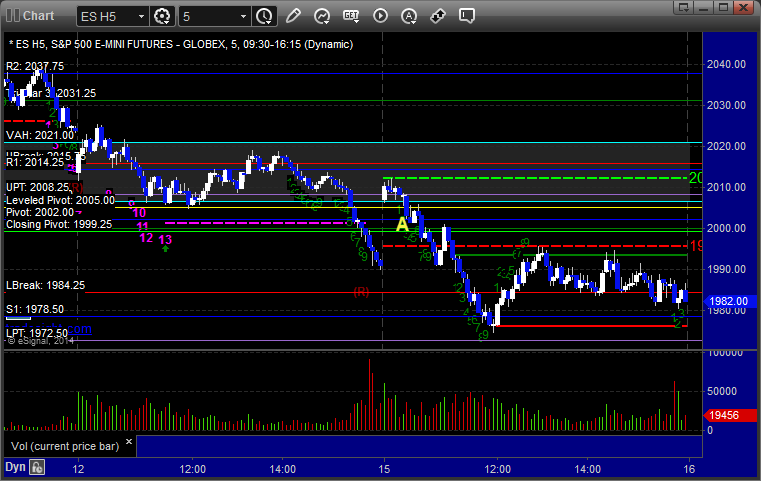 Mark's call triggered short at A at 2001.75 and stopped for 7 ticks, then triggered again shortly after that, hit first target for 6 ticks, and he lowered the stop several times and stopped the second half 27 ticks in the money: