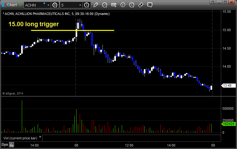 From the report, ACHN triggered long (without market support due to opening 5 minutes) and worked enough for a partial:
