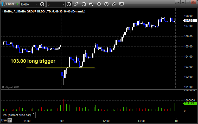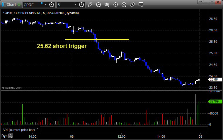 With each stock's recap, we will include a (with market support) or (without market support) tag, designating whether the trade triggered with or without market directional support at the time. Anything in the first five minutes will be considered WITHOUT market support because market direction cannot be determined that early. ETF calls do not require market support, and are thus either winners or losers.