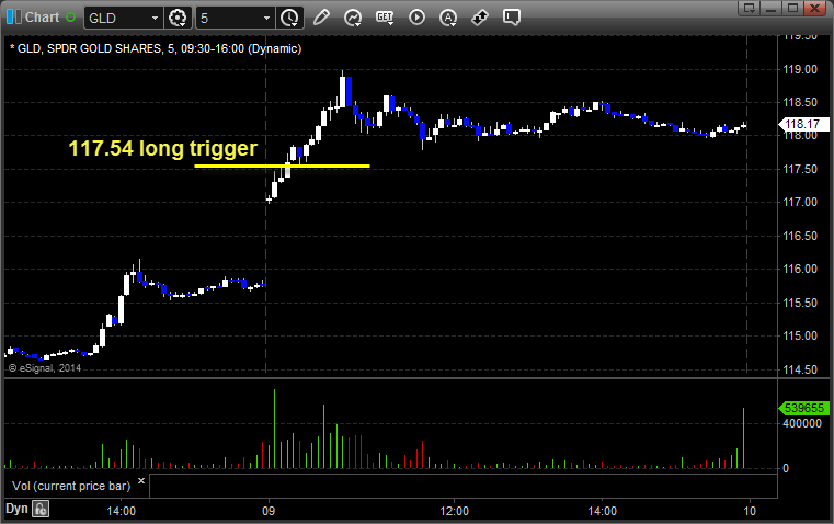 His GLD triggered long (ETF, so no market support needed) and worked: