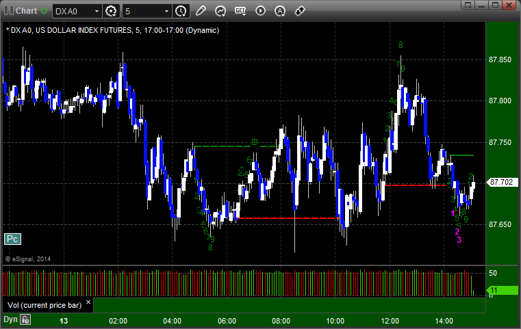 Here's a look at the US Dollar Index intraday with our market directional lines: