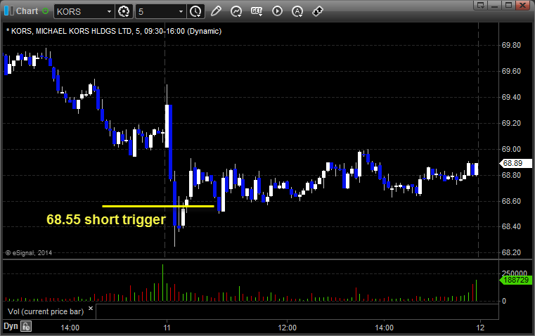 From the Messenger/Tradesight_st Twitter Feed, Rich's KORS triggered short (with market support) and worked enough for a partial: