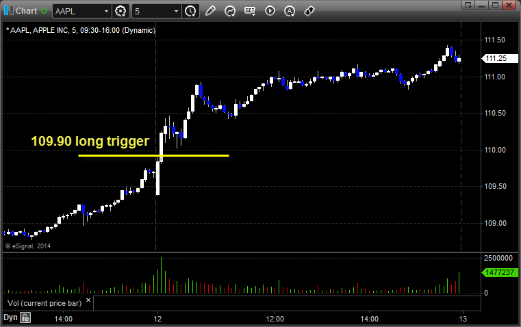 From the Messenger/Tradesight_st Twitter Feed, AAPL triggered long (with market support) and worked: