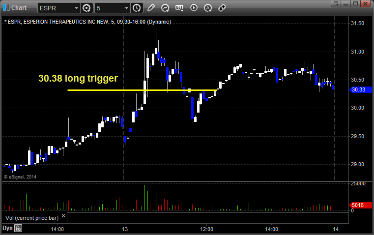 With each stock's recap, we will include a (with market support) or (without market support) tag, designating whether the trade triggered with or without market directional support at the time. Anything in the first five minutes will be considered WITHOUT market support because market direction cannot be determined that early. ETF calls do not require market support, and are thus either winners or losers.