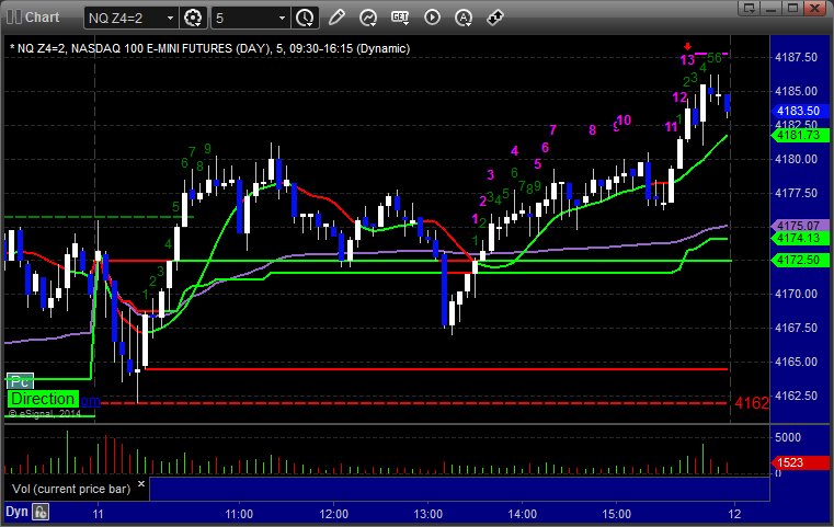 As usual, let's start by taking a look at the ES and NQ with our market directional lines, VWAP, and Comber on the 5-minute chart from today's session: