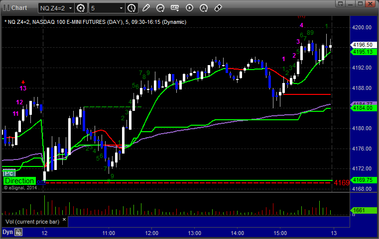 The markets opened flat (small gap up on NQ that eventually filled). Mark's ES call triggered on the way back down and stopped once, then worked to the first target. See that section below.