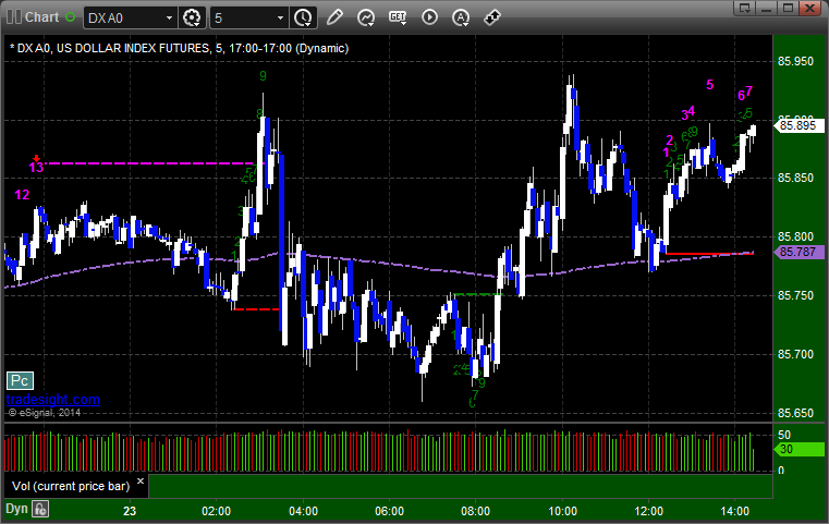 Here's a look at the US Dollar Index intraday with our market directional lines: