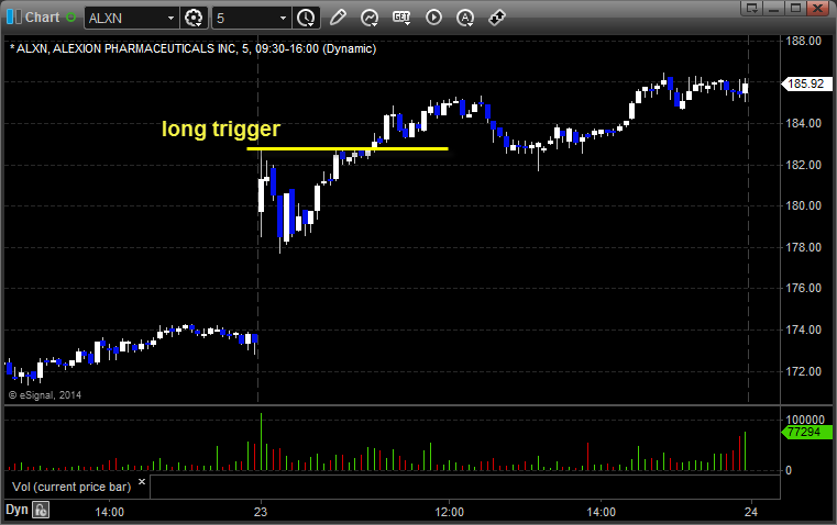 From the Messenger/Tradesight_st Twitter Feed, Rich's ALXN triggered long (with market support) and worked: