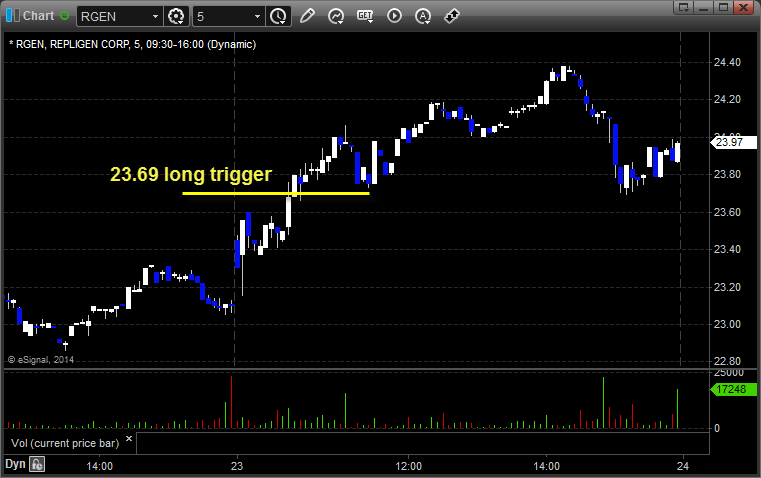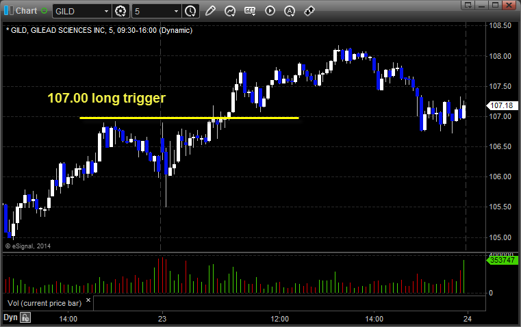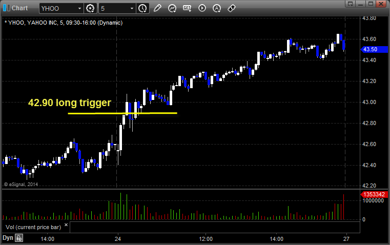 With each stock's recap, we will include a (with market support) or (without market support) tag, designating whether the trade triggered with or without market directional support at the time. Anything in the first five minutes will be considered WITHOUT market support because market direction cannot be determined that early. ETF calls do not require market support, and are thus either winners or losers.