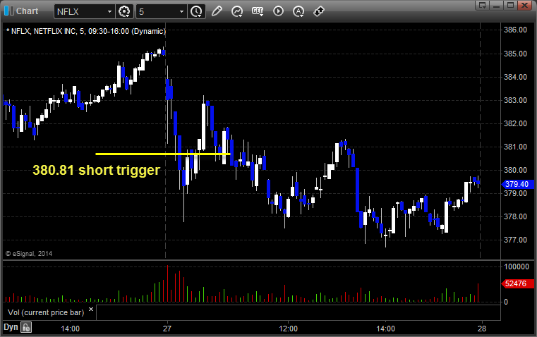 From the Messenger/Tradesight_st Twitter Feed, Rich's NFLX triggered short (with market support) and worked enough for a partial: