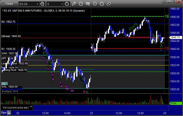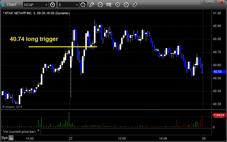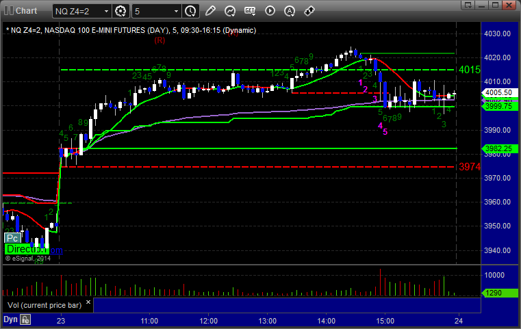 Three triggers (could have done a fourth) from the calls, with two stopping out (before it worked the third time) and a long that worked. See the ES section below. This ended up being a really dull trading session with horrible volume of only 1.4 billion NASDAQ shares that went nowhere.