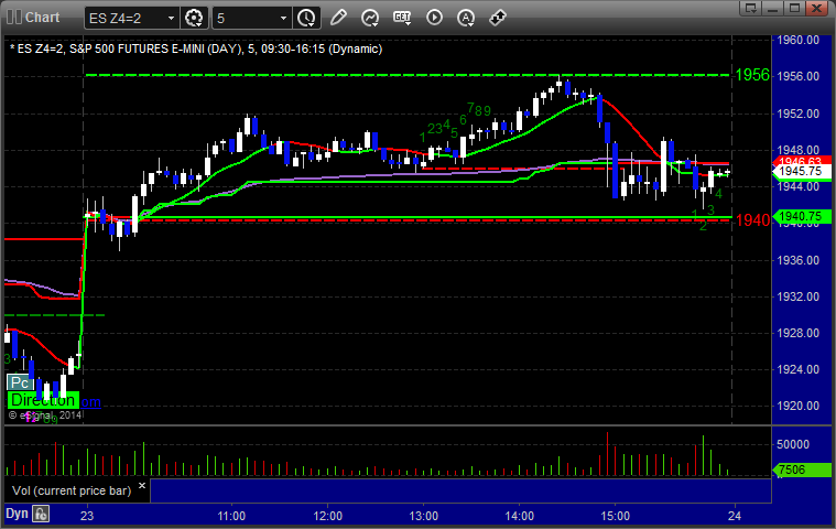 As usual, let's start by taking a look at the ES and NQ with our market directional lines, VWAP, and Comber on the 5-minute chart from today's session: