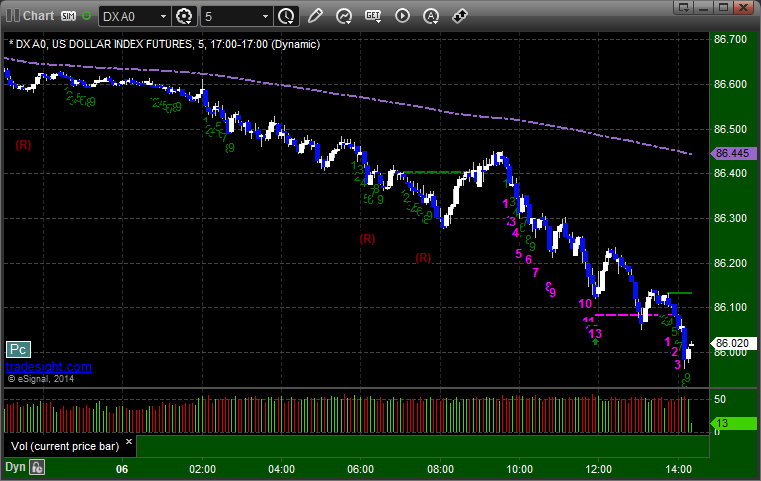 Here's a look at the US Dollar Index intraday with our market directional lines: