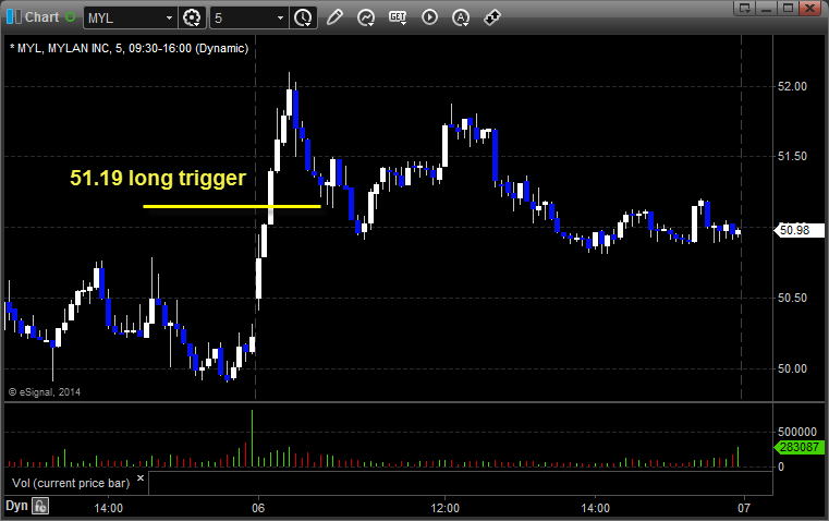 With each stock's recap, we will include a (with market support) or (without market support) tag, designating whether the trade triggered with or without market directional support at the time. Anything in the first five minutes will be considered WITHOUT market support because market direction cannot be determined that early. ETF calls do not require market support, and are thus either winners or losers.