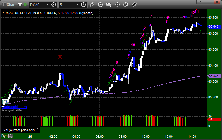 Here's a look at the US Dollar Index intraday with our market directional lines: