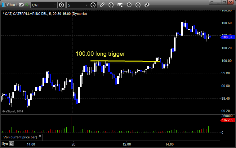 With each stock's recap, we will include a (with market support) or (without market support) tag, designating whether the trade triggered with or without market directional support at the time. Anything in the first five minutes will be considered WITHOUT market support because market direction cannot be determined that early. ETF calls do not require market support, and are thus either winners or losers.