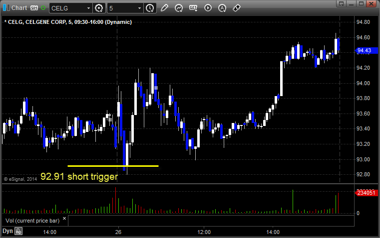 From the Messenger/Tradesight_st Twitter Feed, CELG triggered short (with market support) and didn't work: