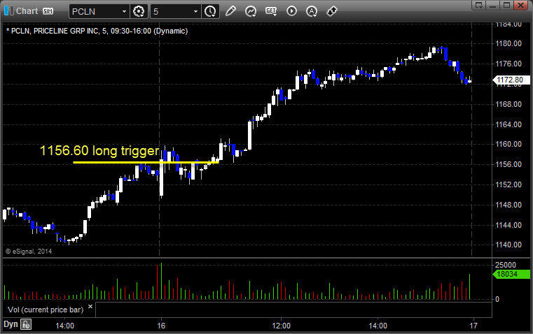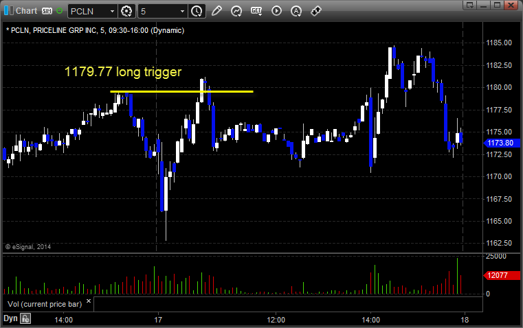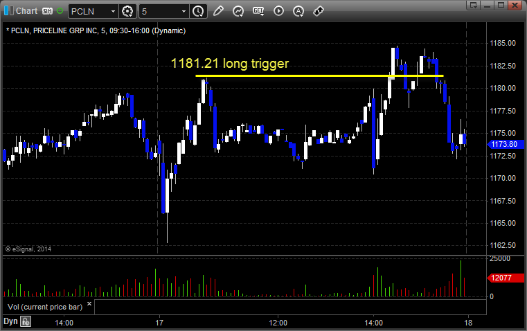 From the Messenger/Tradesight_st Twitter Feed, Rich's PCLN triggered (without market support due to opening 5 minutes) and worked: