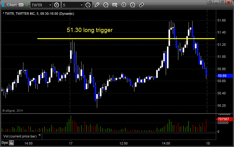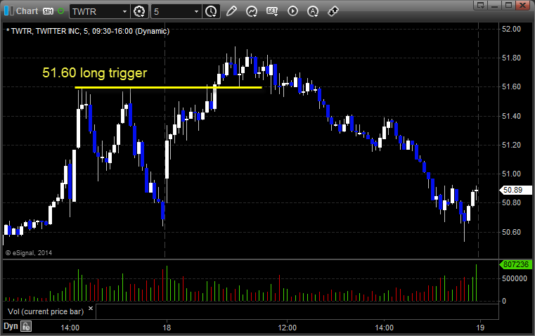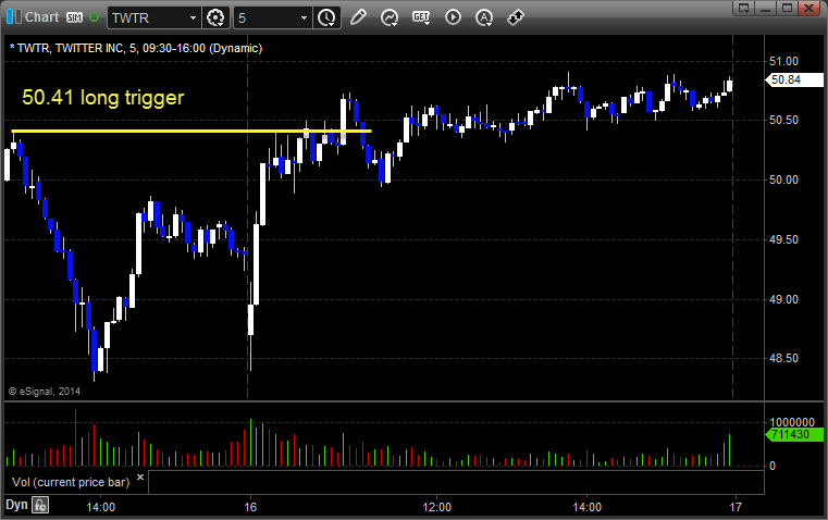 From the Messenger/Tradesight_st Twitter Feed, Rich's TWTR triggered long (with market support) and worked enough for a partial: