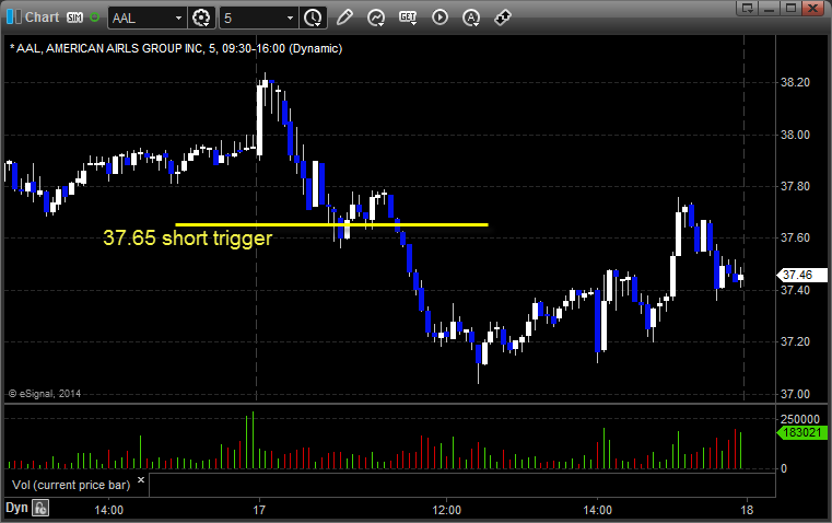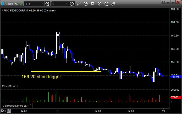 His FDX triggered short (technically with market support on the one spike of the day where the market direction went red for a second) and eventually worked enough for a partial: