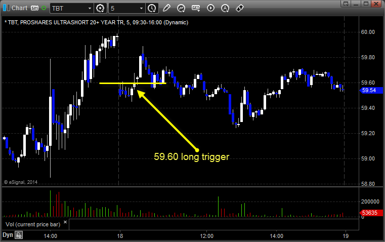 His TBT triggered long (ETF, so no market support needed) and worked enough for a partial: