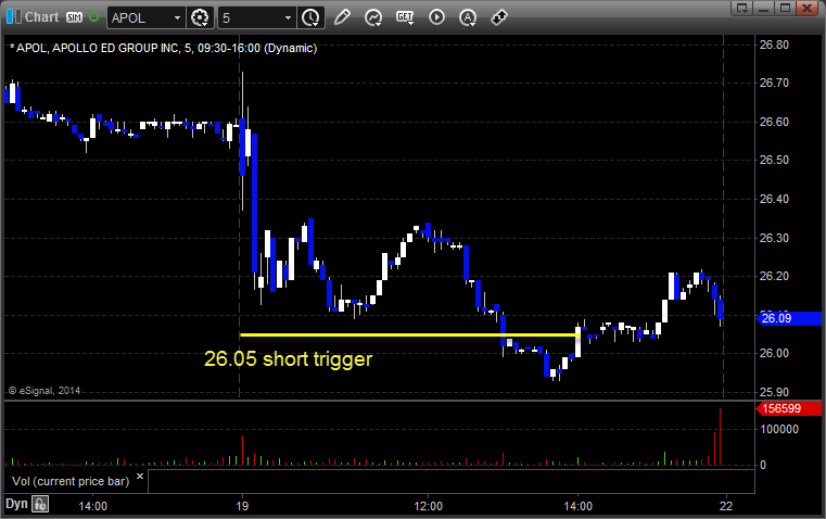 From the report, APOL triggered short (with market support) and didn't work (worst day for that great setup to trigger is triple expiration):