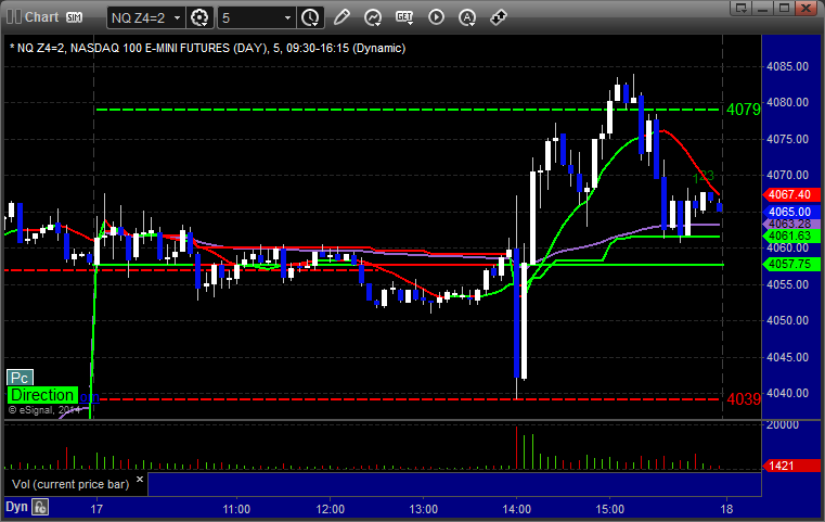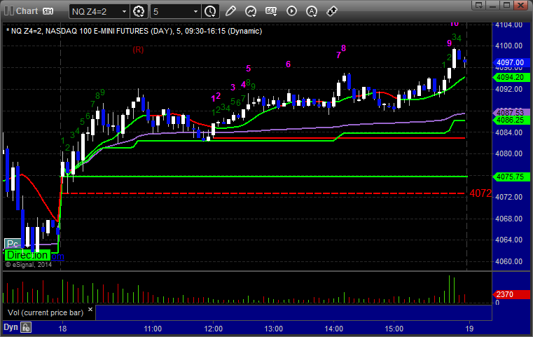As usual, let's start by taking a look at the ES and NQ with our market directional lines, VWAP, and Comber on the 5-minute chart from today's session: