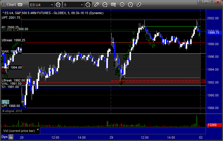 Just a reminder that we use half points for ticks on the NQ and not the quarter point measurement that the exchanges switched to in recent years. This allows us to use 6 ticks as a key target as we do on the other contracts. It also keeps the value of a tick at $10, closer to the value of a tick on the other contracts.