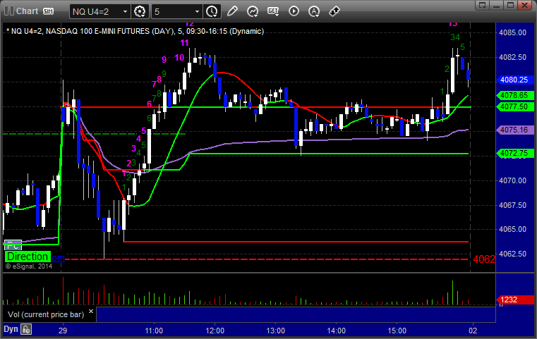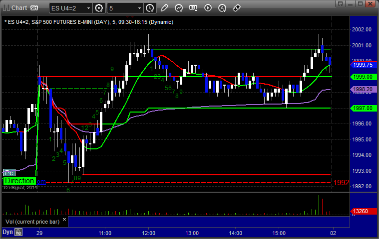 As usual, let's start by taking a look at the ES and NQ with our market directional lines, VWAP, and Comber on the 5-minute chart from today's session: