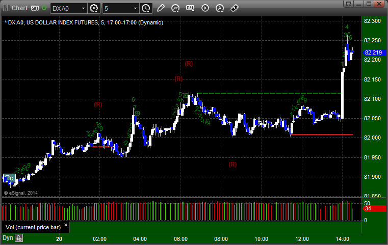Here's a look at the US Dollar Index intraday with our market directional lines: