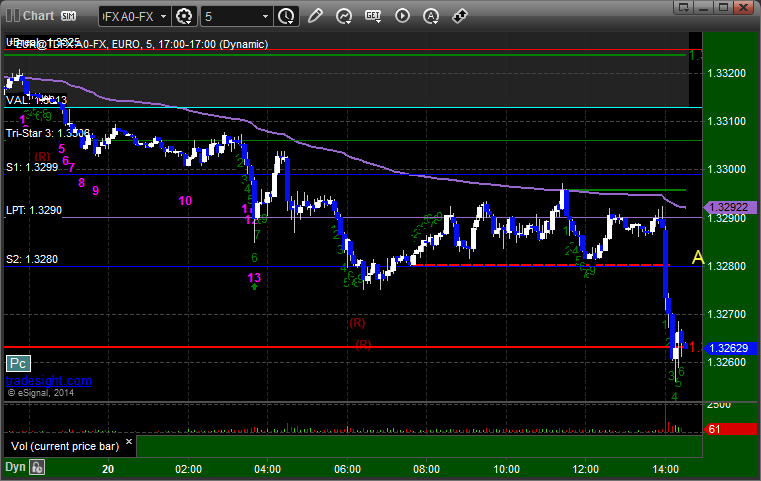 A new trade that was basically flat and we finally stopped the second half of the trade from two days ago 60 pips in the money. See EURUSD below.