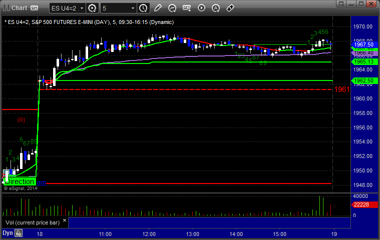 As usual, let's start by taking a look at the ES and NQ with our market directional lines, VWAP, and Comber on the 5-minute chart from today's session: