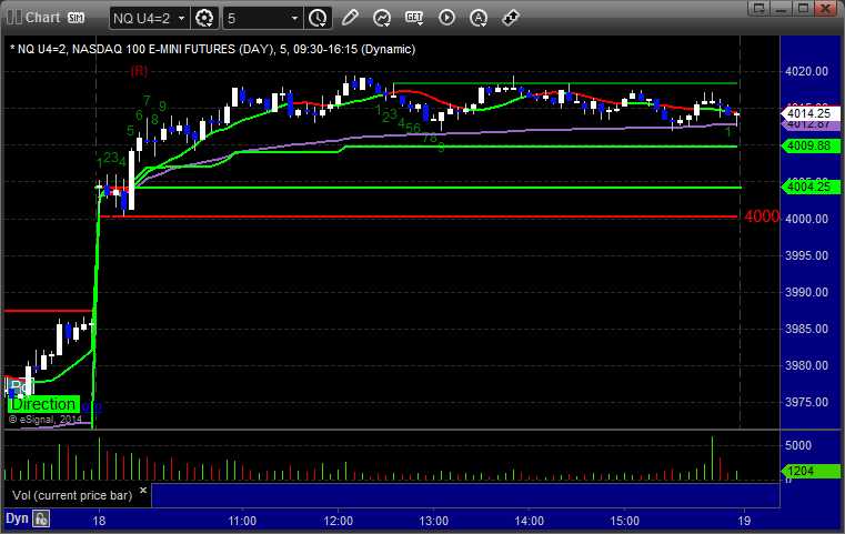 A small winner in another dead session which I ended up closing out to lock in the gain after the market was dead on no volume. See ES section below. NASDAQ volume closed at a "worst day yet" level of 1.38 billion shares.