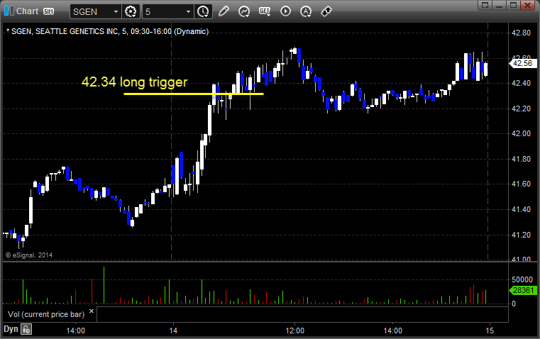 From the report, SGEN triggered long (with market support) and worked enough for a partial, though I closed it out of boredom: