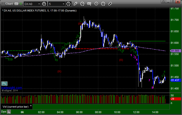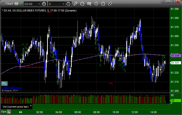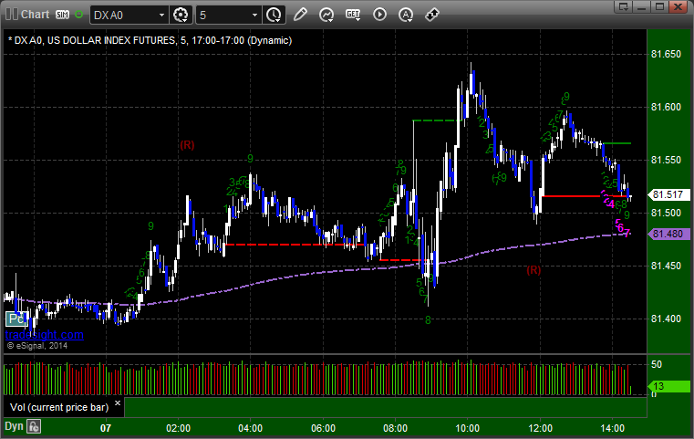 Here's a look at the US Dollar Index intraday with our market directional lines: