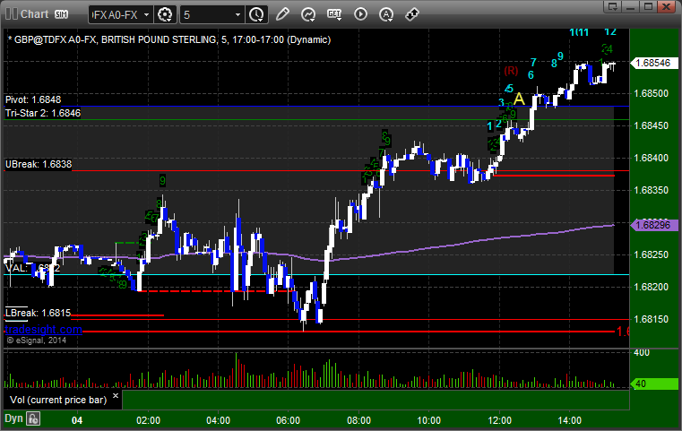Well, the EURUSD moved, but our calls were in the GBPUSD for the session and nothing triggered, although we bounced right off of the short entry exactly. On to tomorrow...
