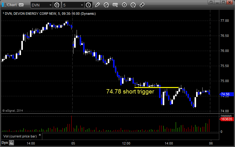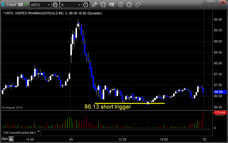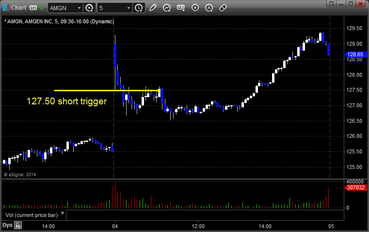 From the Messenger/Tradesight_st Twitter Feed, Rich's AMGN triggered short (with market support) and worked:
