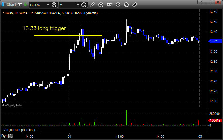 From the report, BCRX triggered long (with market support) and went enough for a partial: