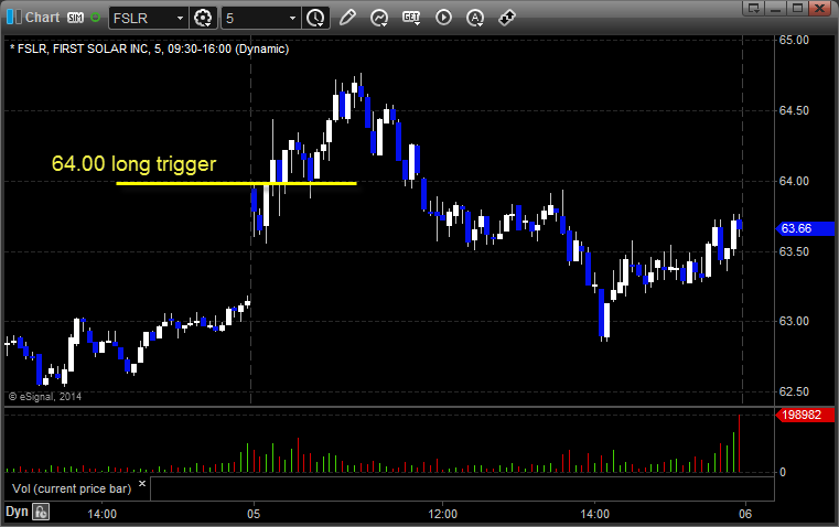From the Messenger/Tradesight_st Twitter Feed, FSLR triggered long (without market support) and worked enough for a partial: