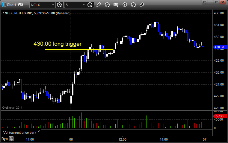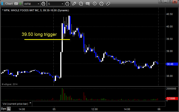 With each stock's recap, we will include a (with market support) or (without market support) tag, designating whether the trade triggered with or without market directional support at the time. Anything in the first five minutes will be considered WITHOUT market support because market direction cannot be determined that early. ETF calls do not require market support, and are thus either winners or losers.