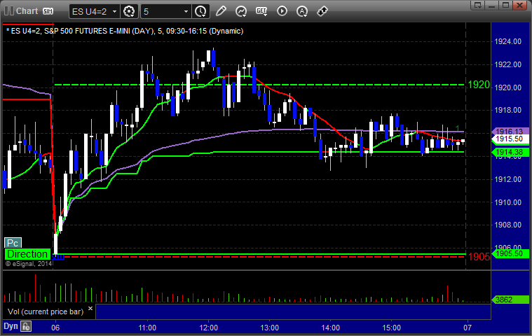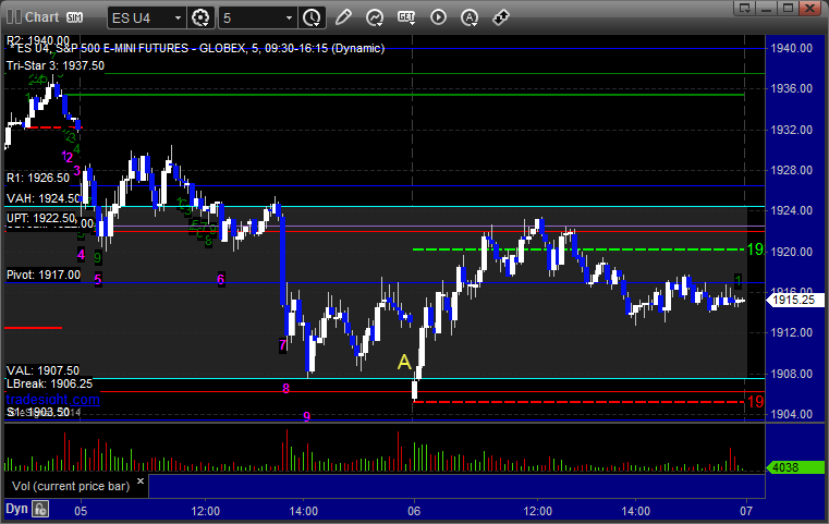 Triggered short at A at 1920.00, hit first target for 6 ticks and stopped second half over the entry: