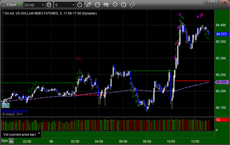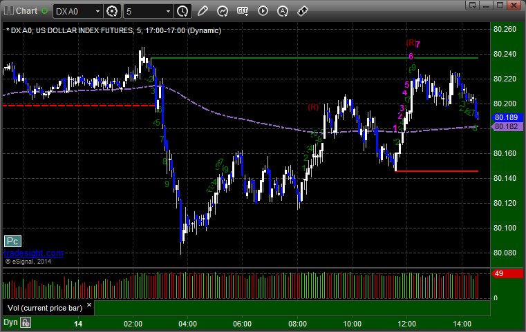 Here's a look at the US Dollar Index intraday with our market directional lines: