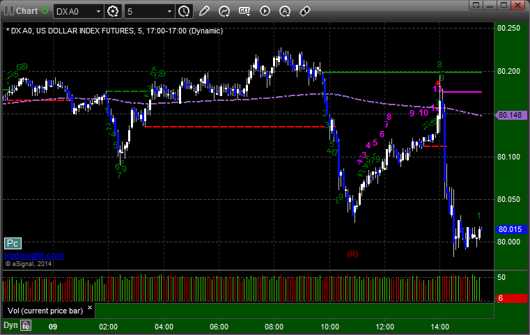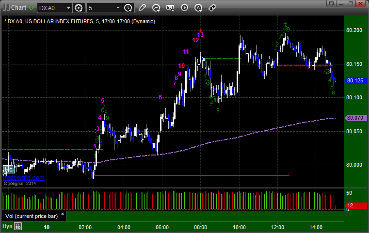 Here's a look at the US Dollar Index intraday with our market directional lines: